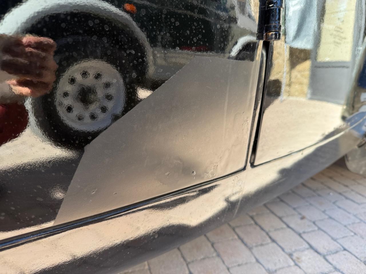 Les jambonneaux ont été traités contre la rouille et le châssis est sain; seuls quelques points de rouille superficiels sont présents sur les portières. La carrosserie nécessiterait un peu de soin pour retrouver son lustre d’antan.