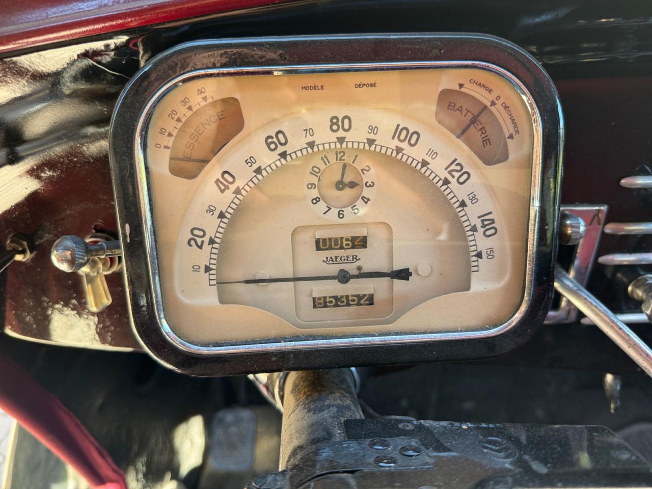L’intérieur a été restauré et est en bon état. L’embrayage et les freins ont été remplacés récemment, ainsi que le carburateur. Le réservoir a également été remplacé par un modèle en inox. Le système électrique est encore en 6 V, mais totalement fonctionnel. Le démarreur présente quelques ratés, il sera réparé avant la vente.